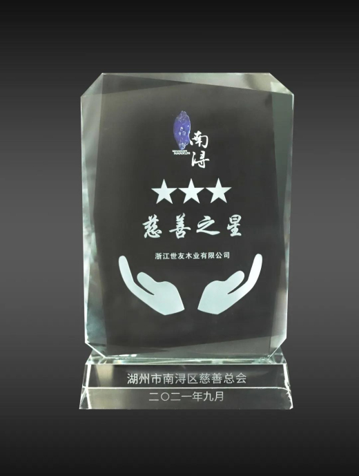 2021年9月2日,南潯區(qū)“慈善助力共同富?!蹦季杌顒郁?021年“慈善一日捐”動員大會隆重舉行,會上,浙江世友木業(yè)有限公司被南潯區(qū)政府授予“2020年慈善突出貢獻單位”、“三星級水晶晶南潯慈善之星”榮譽,彰顯了世友木業(yè)的社會責任與擔當。