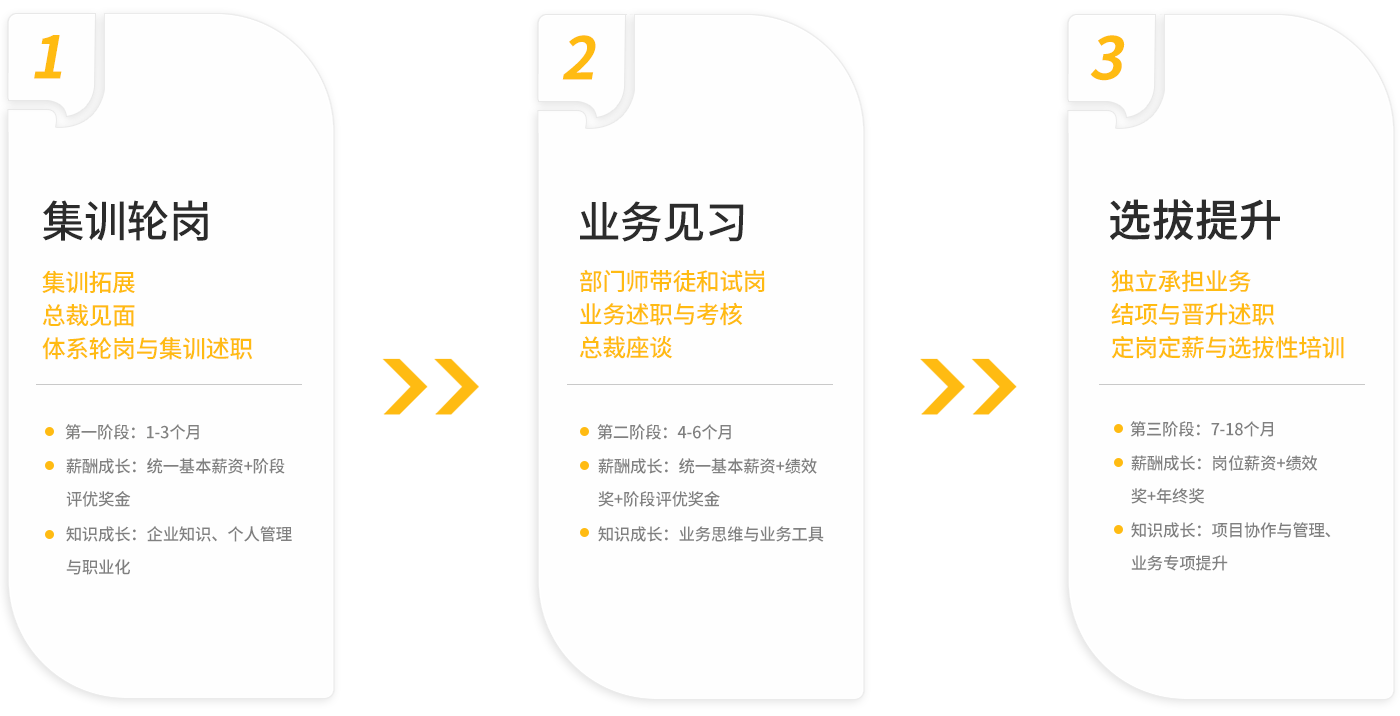 面試結果決定同學們是否能成為世友管培生。被錄取的同學,薪資成長將分為以下三階段:(1-3個月):統(tǒng)一基本薪資+階段性評分獎勵;(4-6個月):統(tǒng)一基本薪資+績效工資+階段性考核獎;(7月以后):會根據(jù)部門及確定崗位的特質確定不同的薪資標準。